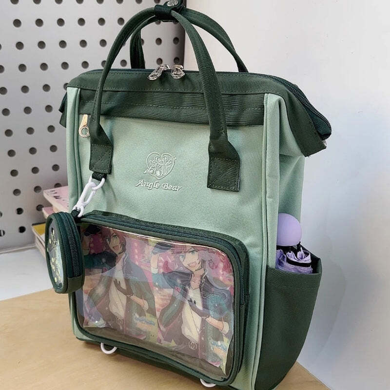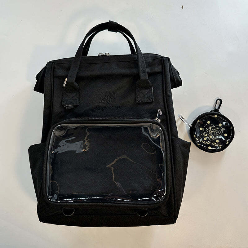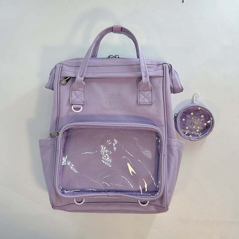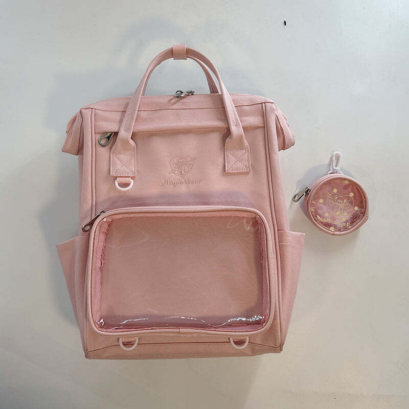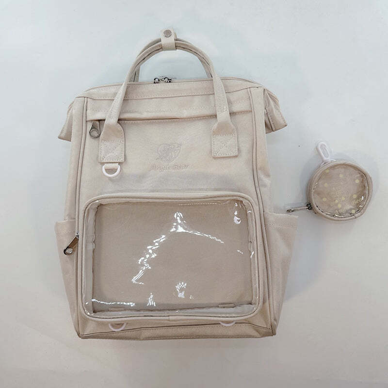 White Kawaii Ita Backpack with Clear Window and Included Insert for Pin Display combines everyday carry with a clear display area for pins, badges, charms, or character merch.