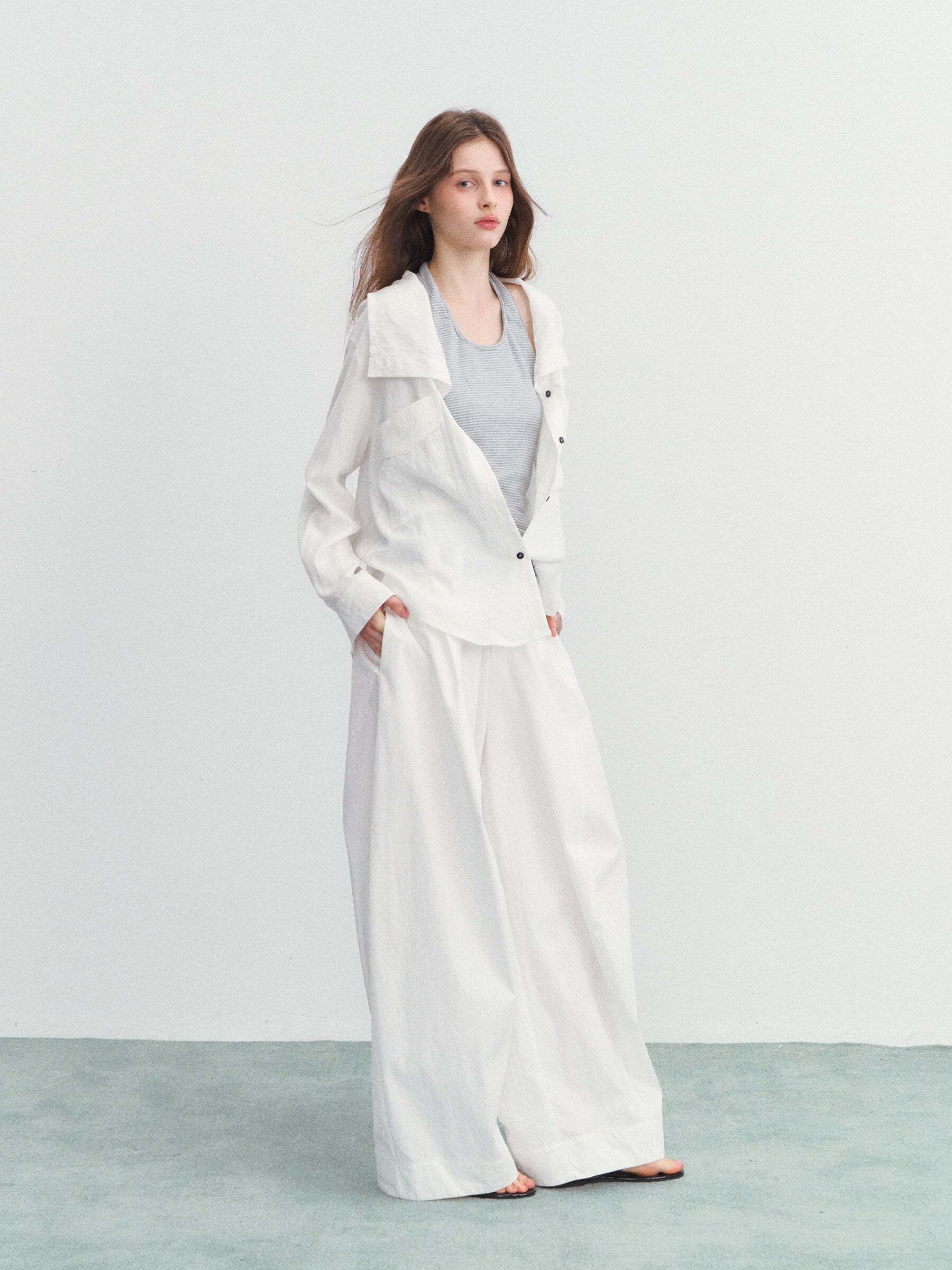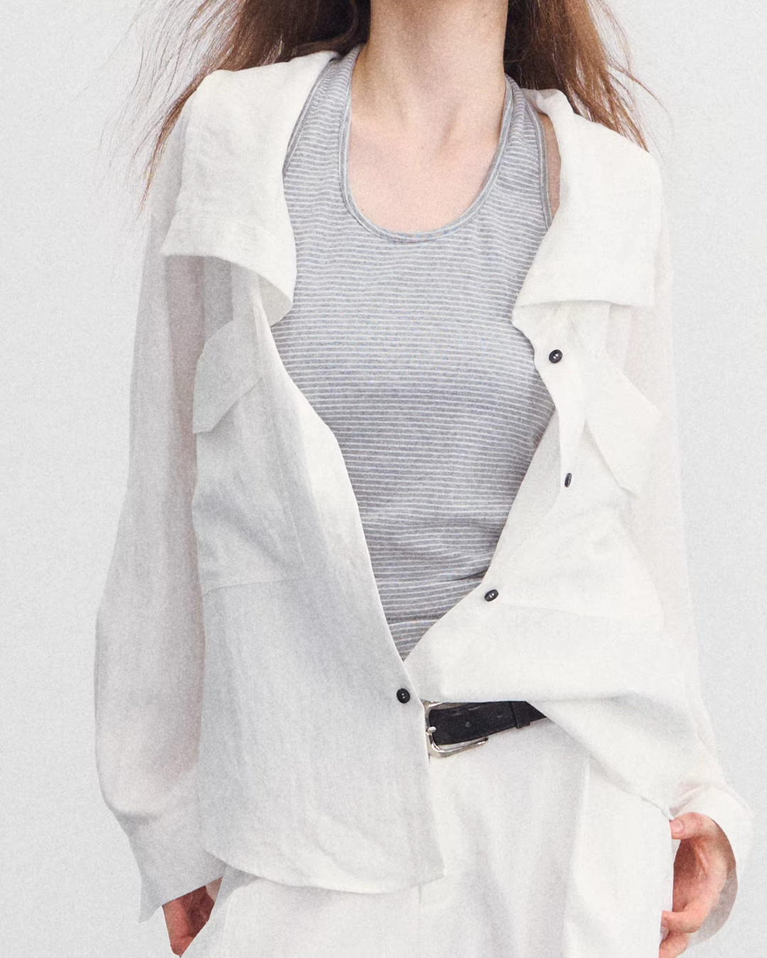 A set item of a long-sleeve shirt and tank top that is lightweight and comfortable to wear.