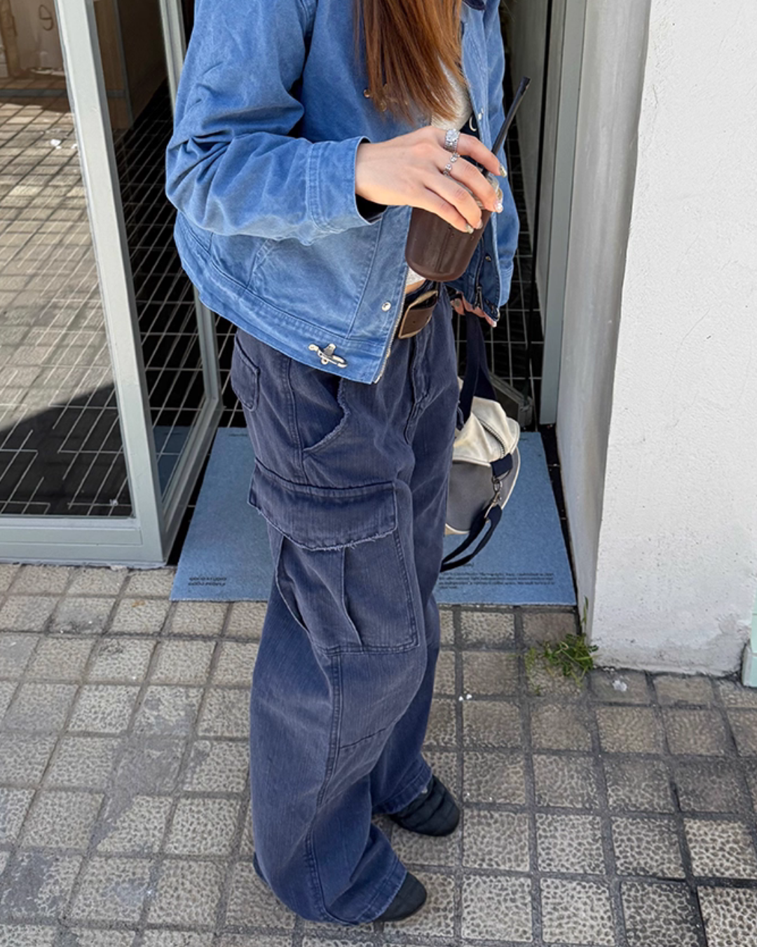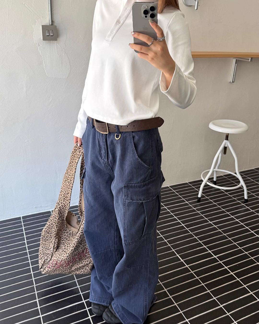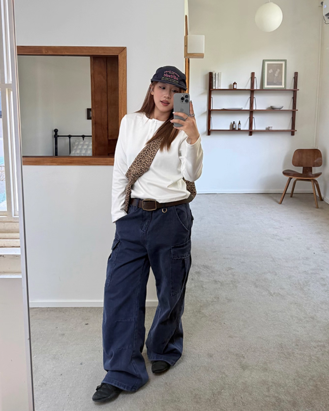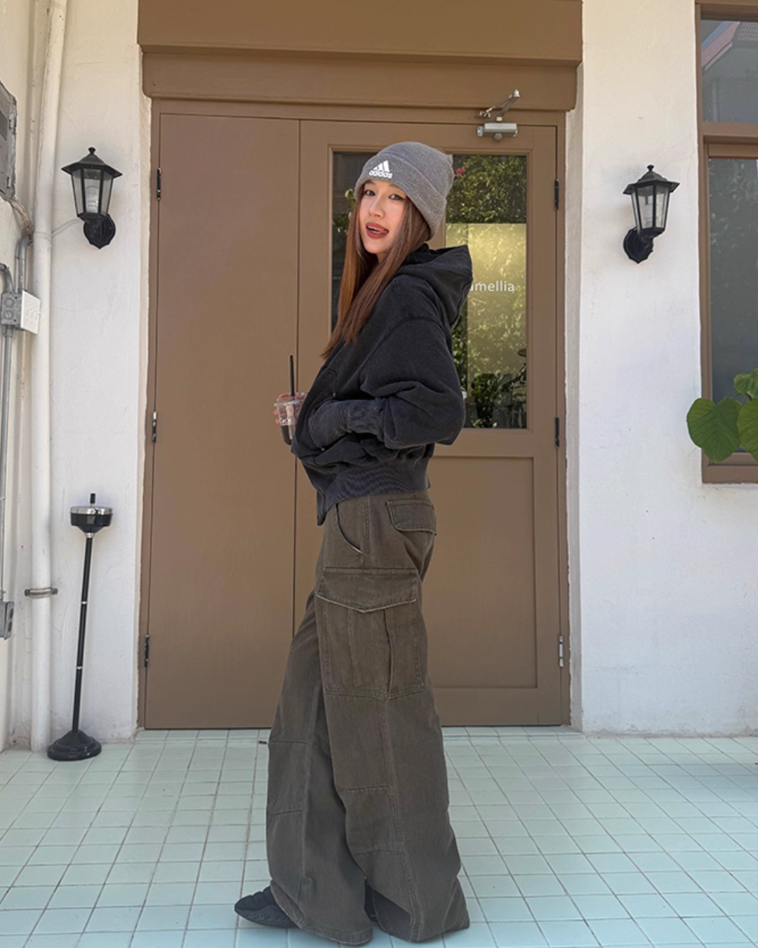 When paired with Y2K or street-style tops, a fashionable casual look is completed.