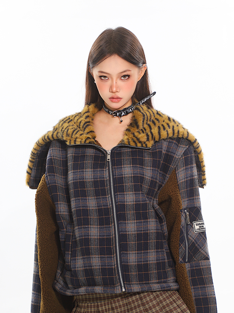 Elevate your autumn and winter wardrobe with our Women’s Navy Collar Fur Spliced Cotton Coat, featuring an eye-catching American plaid and leopard print design. This stylish layering jacket offers a flattering fit that combines comfort and sophistication, perfect for any casual outing or cozy evening. With its unique fur splice detailing and vibrant patterns, this coat not only keeps you warm but also ensures you stand out in any crowd. Don’t miss out on this must-have fashion piece add it to your cart today!