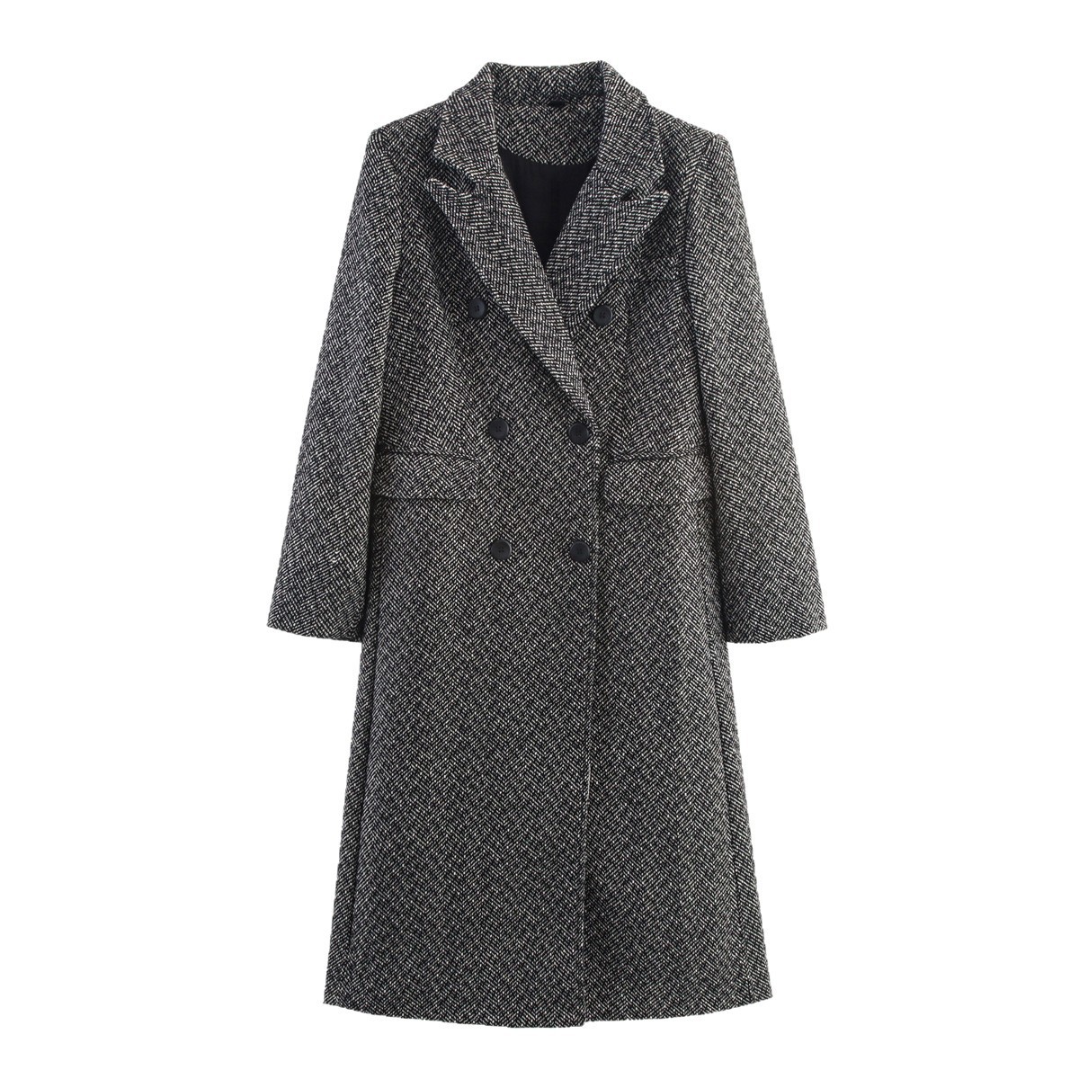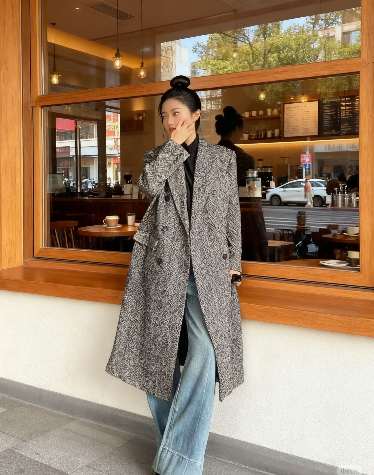 Womens British-style Commuter Herringbone Loose Wool Coat