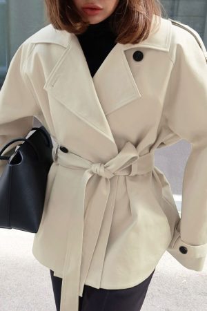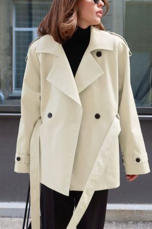 Women’s Loose-Fit Trench Coat With Lapel Collar Defined Waist And Belt