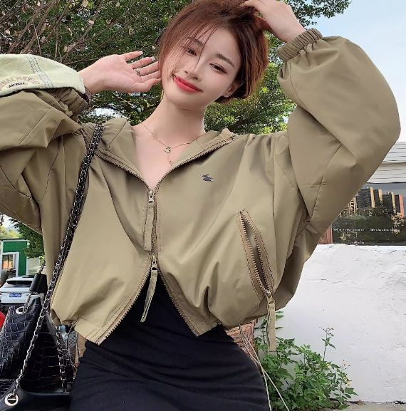 Be the first to review “Women Loose Sports Windbreaker Jacket Drawstring, Double Zipper, Hood Casual Street Outerwear” Cancel reply