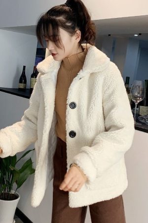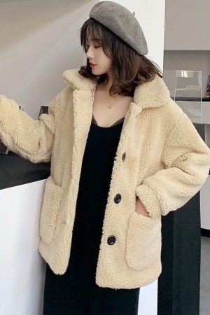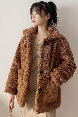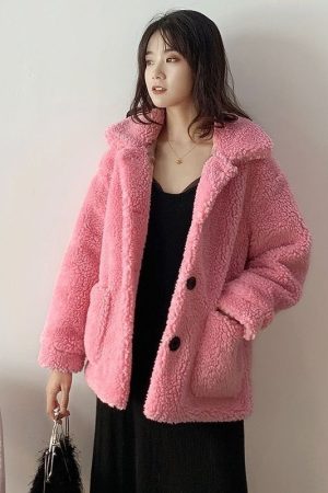 Womens Short Lambswool Coat For Fall And Winter