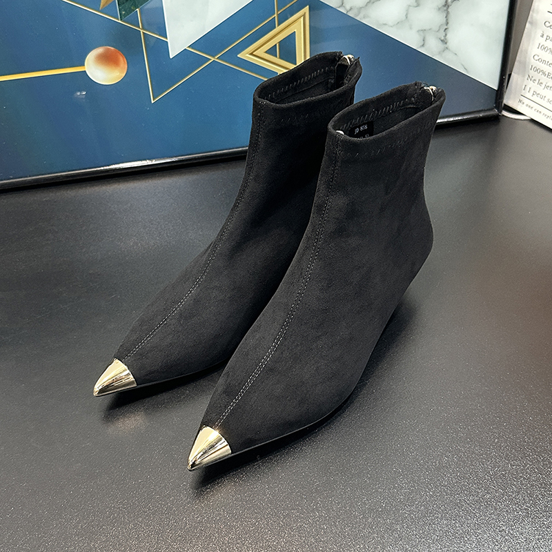 Step into style this Fall/Winter 2025 with our Women’s Slim Ankle Boots, designed for the modern fashionista. These chic boots feature a low heel and a striking metallic pointed toe, while the elastic sock design ensures a snug yet comfortable fit, perfect for all-day wear. Crafted with plush cotton, they provide warmth and style with every step. Elevate your wardrobe and make a statement effortlessly add these essential ankle boots to your cart today!