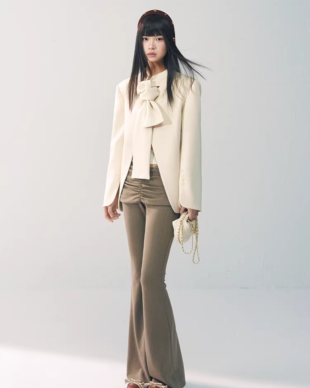 A jacket with a voluminous ribbon that is impressive and full of luxury.