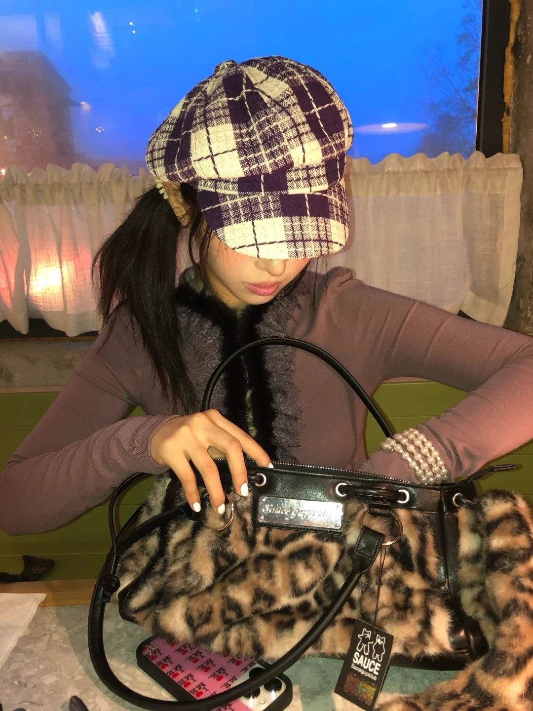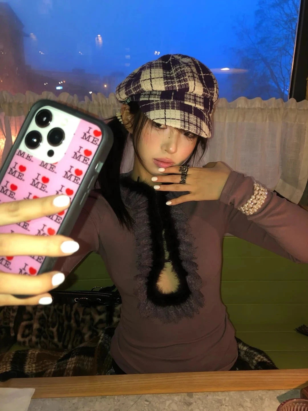 Y2K Fur Trim Plunge Top