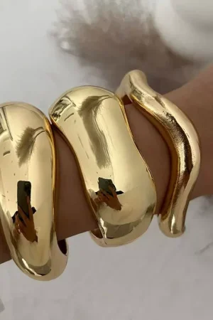 90s Fashion Punk Vintage Wide Cuff Bangles in Gold and Silver Color